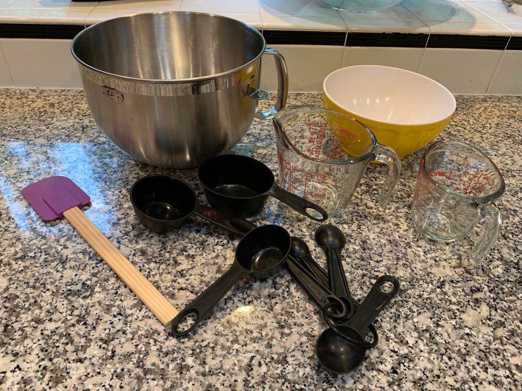 You already know that I am weird and obsessive about some things. Cleaning is not one of them. In this recipe you would dirty up 4 different dry measuring cups and 1 wet one. And measuring sticky stuff like peanut butter is a pain. Ditto, molasses, honey, shortening… How much of the ¾ cup of peanut butter you so carefully jammed into the measuring cup gets into the bowl and how much do you have to clean out later? With a scale you do not need to do any of that. Just spoon the peanut butter into the bowl until you get to the 185 grams you need. Then you lick the spoon. Press the tare button and measure the next thing right into the bowl, repeat until done. Easy, precise, and less to clean.
