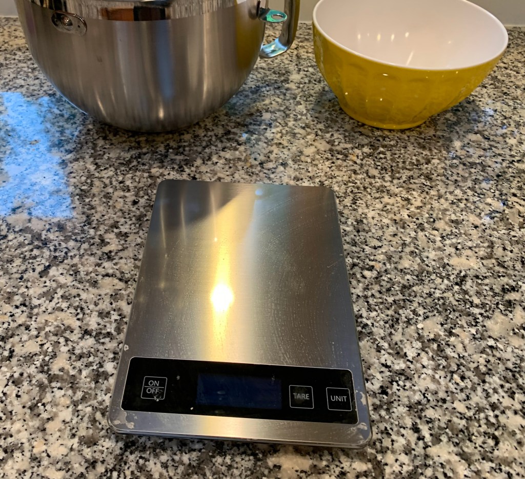 Soooo, let’s move on to something fun. Why you need to cook with a scale. If you bake, you already know why this is important. But we are on the subject so I will work on convincing the rest of you. And yes that- weight is more accurate stuff is true, but here is a big additional reason- it is less mess to clean up. Got your attention now I’ll bet.