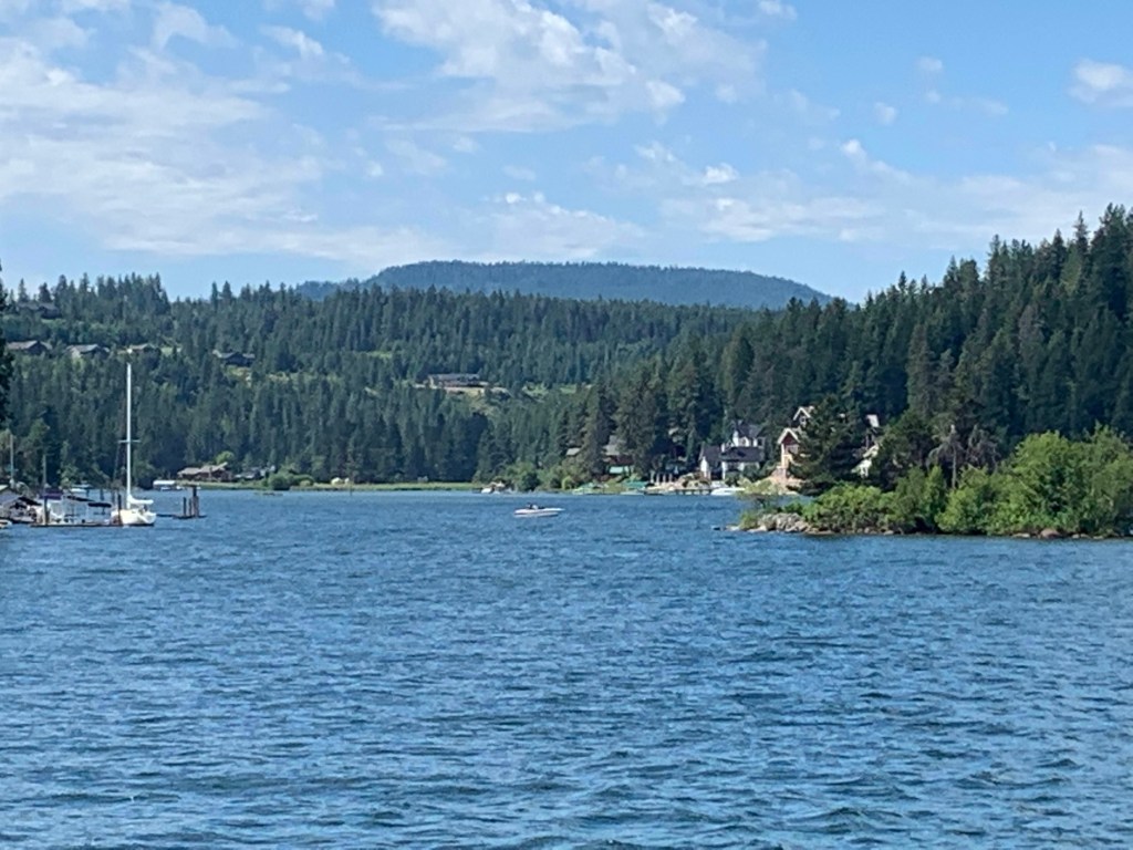 I am not complaining about the influx- the beautiful summer weather (low humidity, few bugs) the natural beauty and varied amenities make this a magnet for vacationers who chose to live here part or full time. We did after all. There is also a wide variety of lifestyles to choose from. On our way to CDA we drove past farms, horse pastures, new housing developments and old weathered dwellings. On the lake cruise they pointed out lakefront homes with no road access, some over a century old; sprawling complexes, modest cabins, and a newer fancy golf course development where you can hang with Hollywood types and pro athletes. There is a lot to offer here and hopefully enough interest in preserving its environment and natural beauty that it doesn’t become a victim of its own popularity.