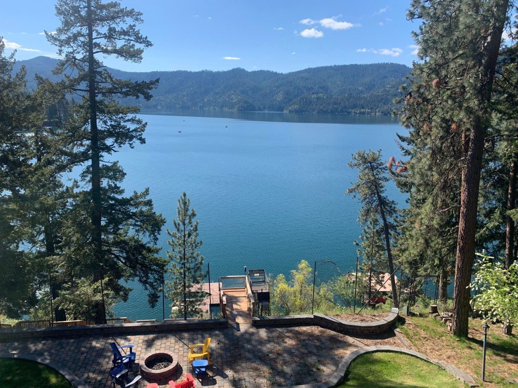 It has been a wonderful summer not to be in Pennsylvania. Weatherwise anyway. Yes, I miss my friends and unlike last summer when the house was usually full of family, this year it’s been just the two of us. But the compensation has been looking out onto the blue waters and green mountainside here in Idaho and being able to be outside and enjoy the beauty. The cool, damp spring didn’t yield to summer until much later than usual, resulting in plentiful lake water levels and green hillsides even now in August. We have had some temps in the upper 90’s, but with 20% humidity it cools off nicely in the evening and really isn’t uncomfortable in the shade, especially down by the water. I am blessed to have the opportunity to be here.
