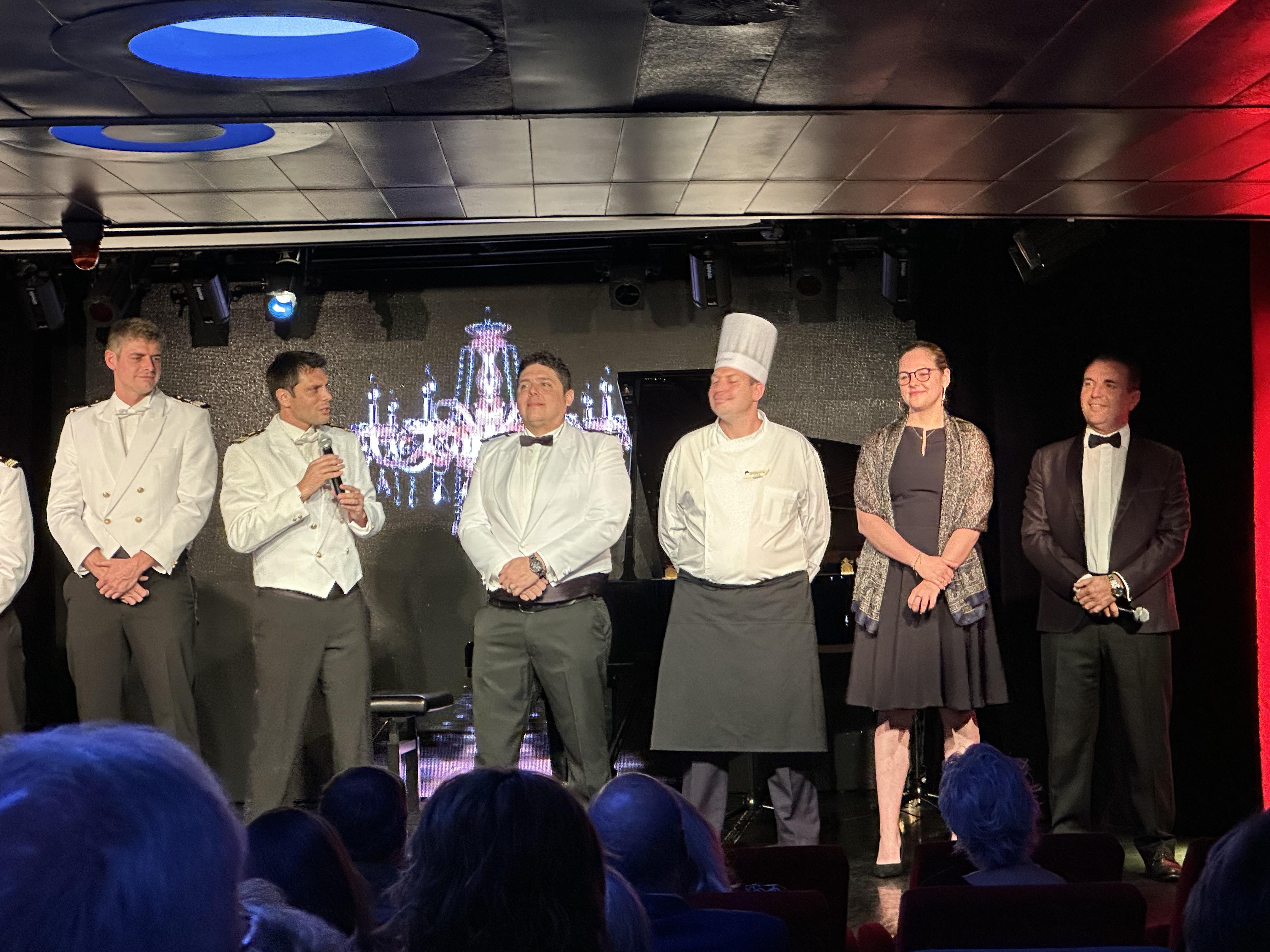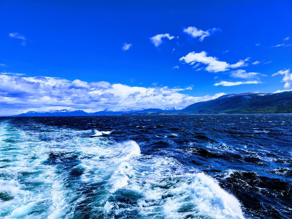 We walked up the gangway to the ship and were greeting by the captain and uniformed ship officers. Quite impressive. We were directed to the check in area to present our various medical forms, vaccine cards, Covid test results and so on. Quickly we had our keys and were in our cabin and reunited with our luggage. Since apparently we were the last group to arrive there was not much time before the departure briefing in the theatre covering all the wonderful things we had in store over the next few weeks. After a lovely dinner (no whole animal carcasses involved) the ship was on its way up the Beagle channel.