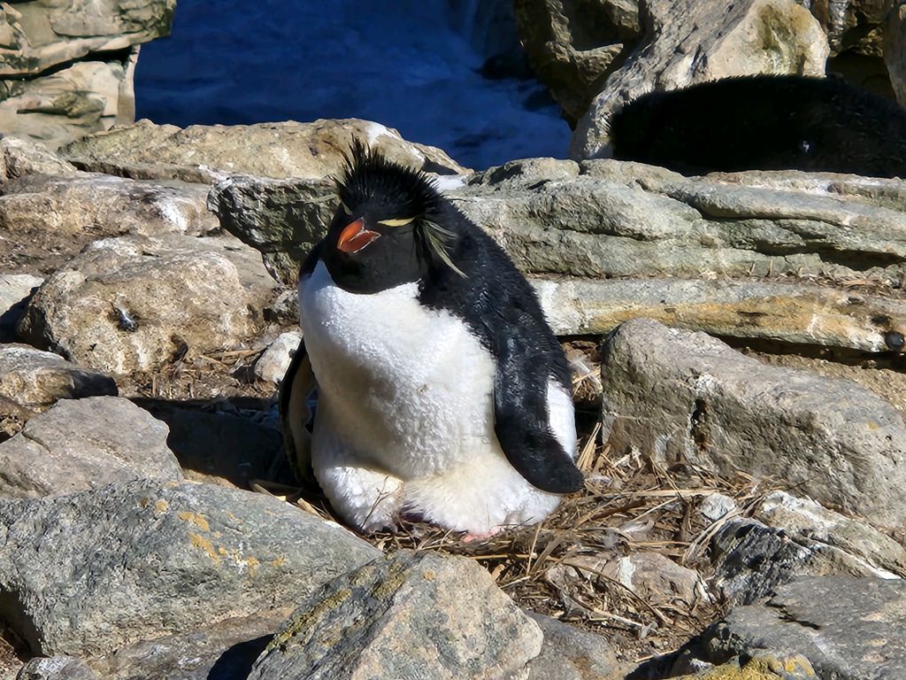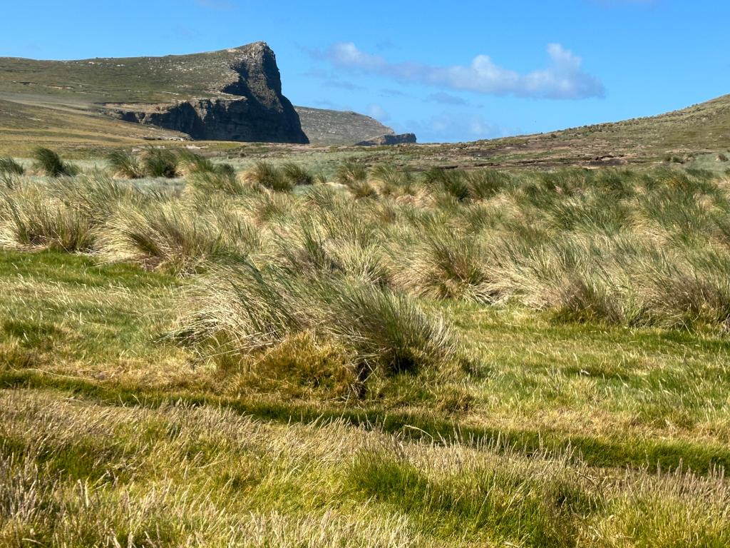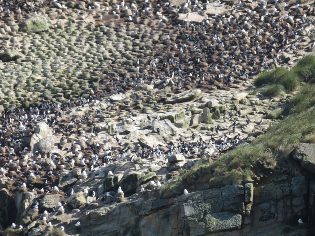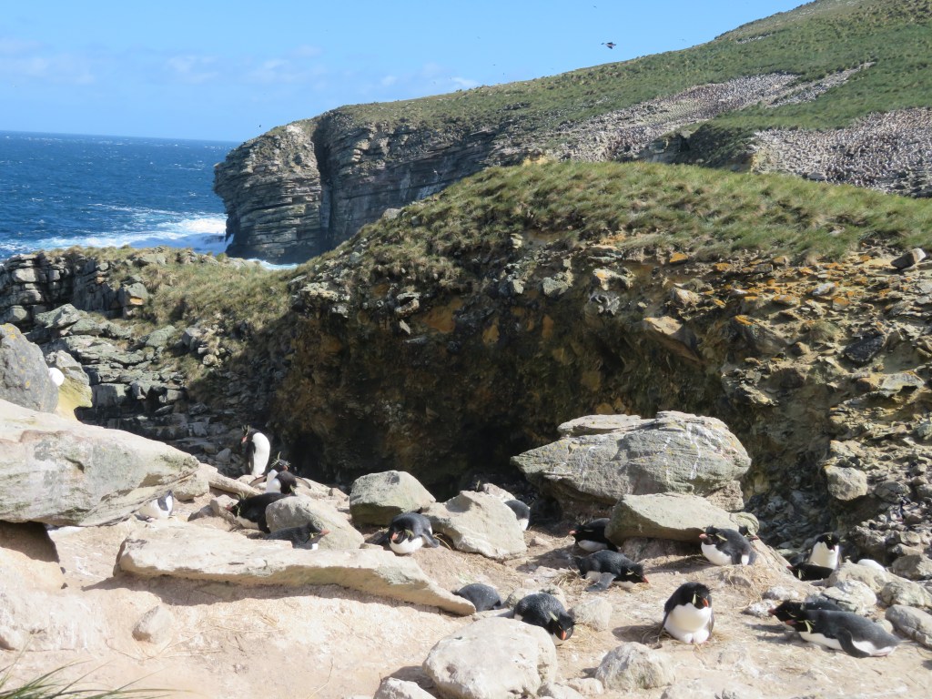 We made two stops in the Falklands. New Island and Graves Cove. On New Island we landed in a beautiful bay and hiked a bit less than a mile through the tuft grass to a cliff with thousands of Rockhopper Penguins, Imperial Cormorants and Black-browed albatross. The naturalists showed us where to look and reminded us of the need to keep 15 feet of distance from the wildlife. They have the right of way, our job is to keep out of it.