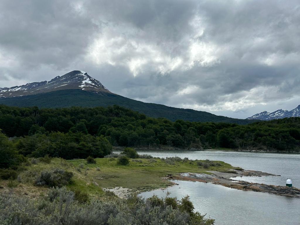 The next morning we got on the bus and went back to the airport. One difference for us from the US, you can bring water with you. Not a big thing, but one less hassle. And they feed you on the plane! It’s not 5 star cuisine but a ham and cheese sandwich platter was pleasant change from the pretzels we would have gotten in the US. Lines to check in and whatever else were long enough to make friends and pretty much exchange life stories. Thank you Baz and Nathalie, a delightful mother and daughter from Australia. After that we had plenty of time before the flight for a lot of “where do we leave from”, “Is that our flight”? Eventually someone in a uniform indicated that we were to go through the door next to the one where we were all standing and the scrum piled clumsily onto an aircraft. It must have been the right plane because we were given instructions on what to do once we arrived in Ushuaia. This basically involved picking up your luggage, taking it 50 feet to the drop off point for transport to the ship and checking in with somebody with a clipboard. There were two options upon arrival (chosen before departure): Lunch in Ushuaia or a tour of Tierra del Fuego National Park and lunch. At the end of either we would be taken to the ship. Basically they had to keep us busy so the ship crew could do their thing between cruises. Quite a logistical undertaking!