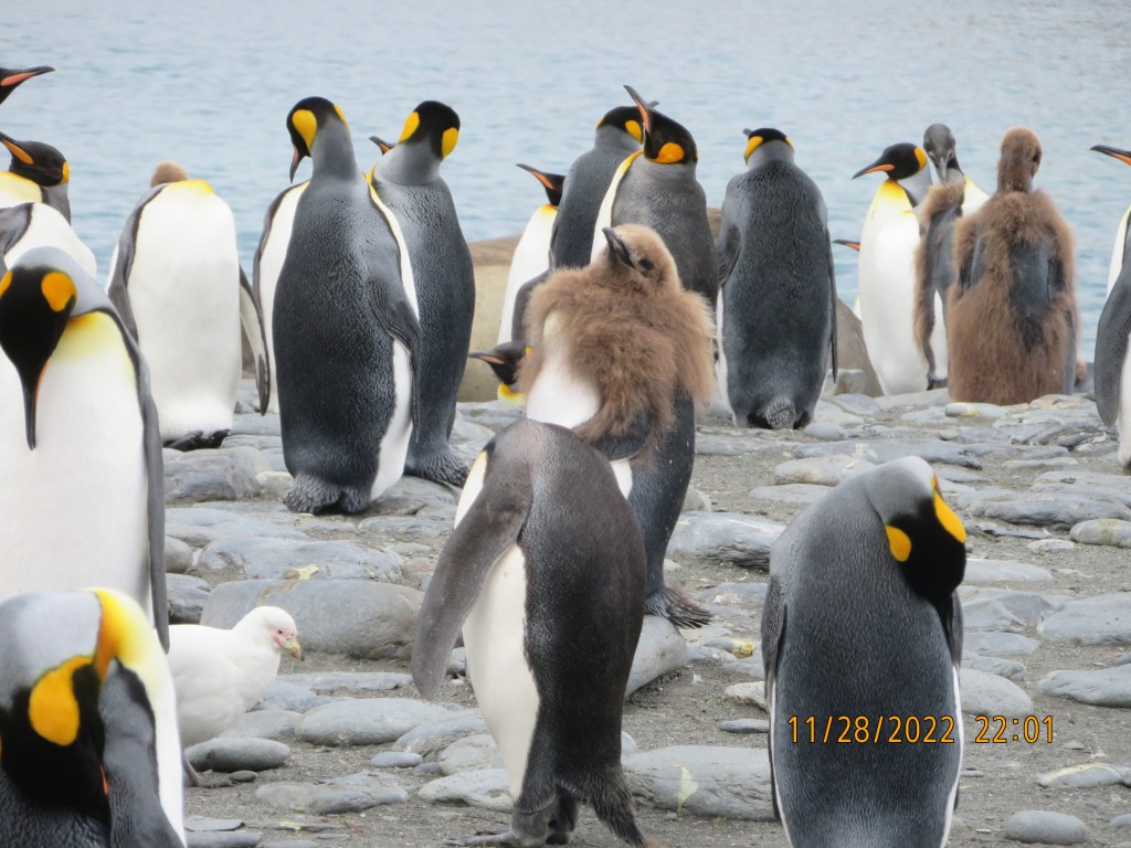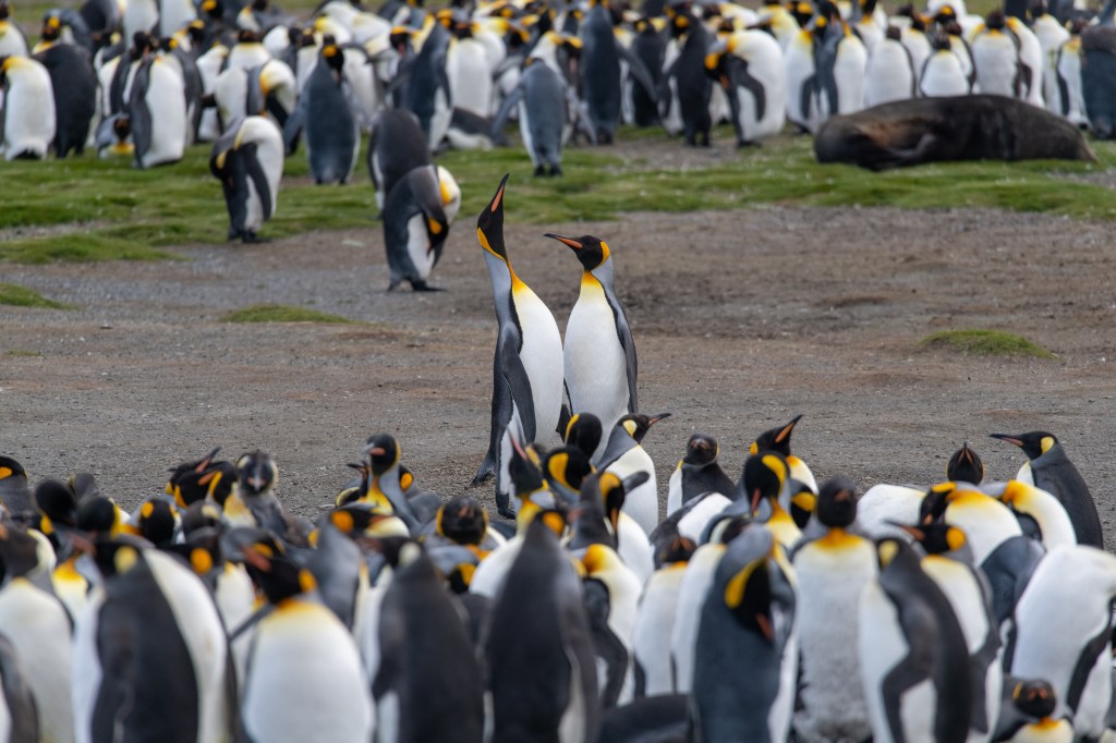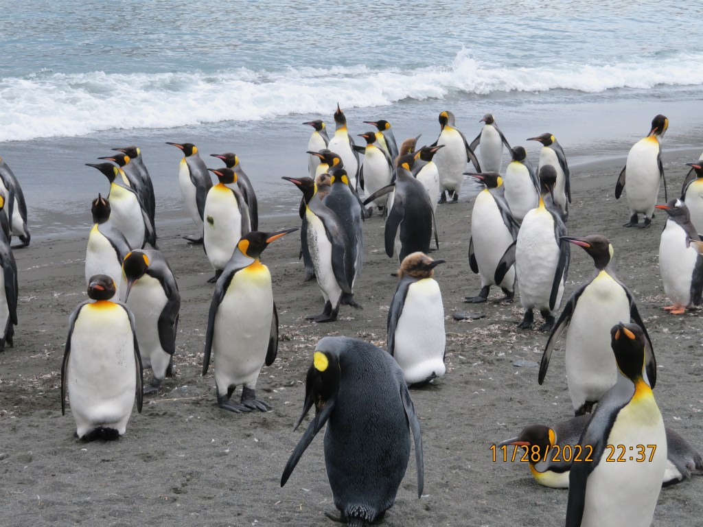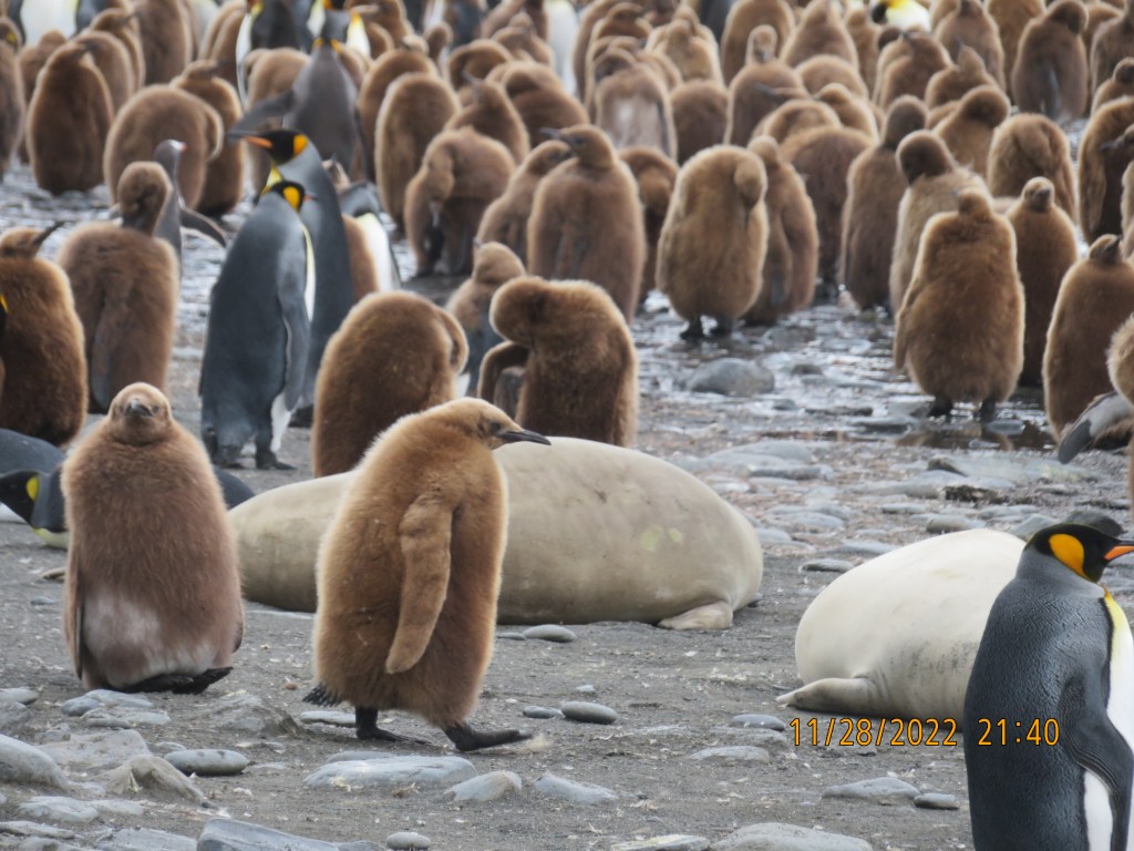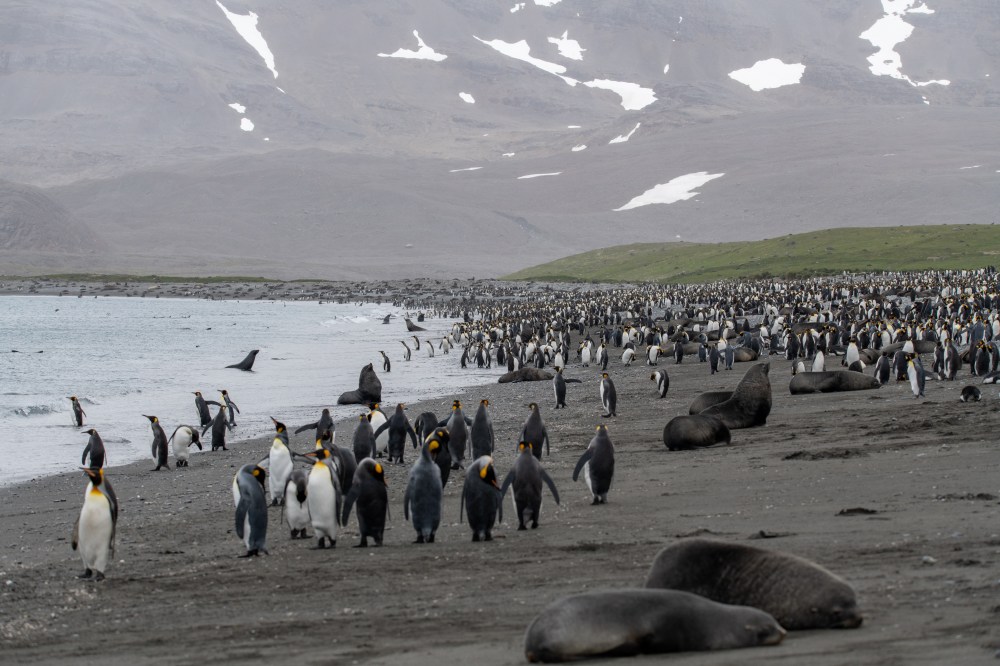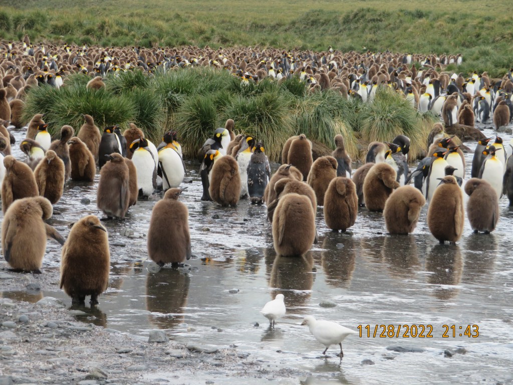 Our last stop on South Georgia was Gold Harbor, a beautiful bay surrounded by sharp peaks and glaciers on the southeast end of the island. There we were greeted by hoards of King Penguins, many molting their brown “baby feathers” in favor of their adult tuxedos.
