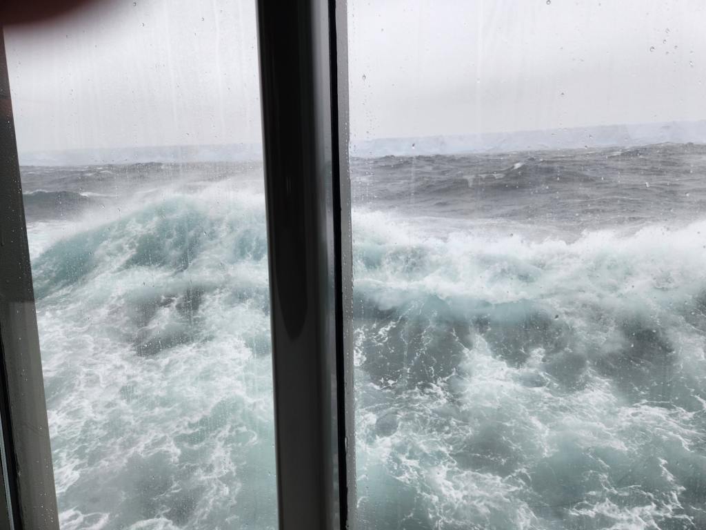 The captain warned us that once we headed out into the open that the waters would get rougher. The Southern Ocean is famously turbulent- the Antarctic Circumpolar Current flows around the continent with no landmass to block its currents and accompanying winds. Frequent storms follow the current. When this massive flow of water is squeezed through the relatively narrow Drake Passage between Cape Horn and the South Shetland Islands the resulting waves and wind often result in the infamous Drake Shake, or not. It didn’t shake for us in the Drake, but we got our rocking and rolling in between South Georgia and Antarctica with waves over 20 feet. We were warned not to leave anything breakable on tables, and yes stuff did slide off onto the floor.