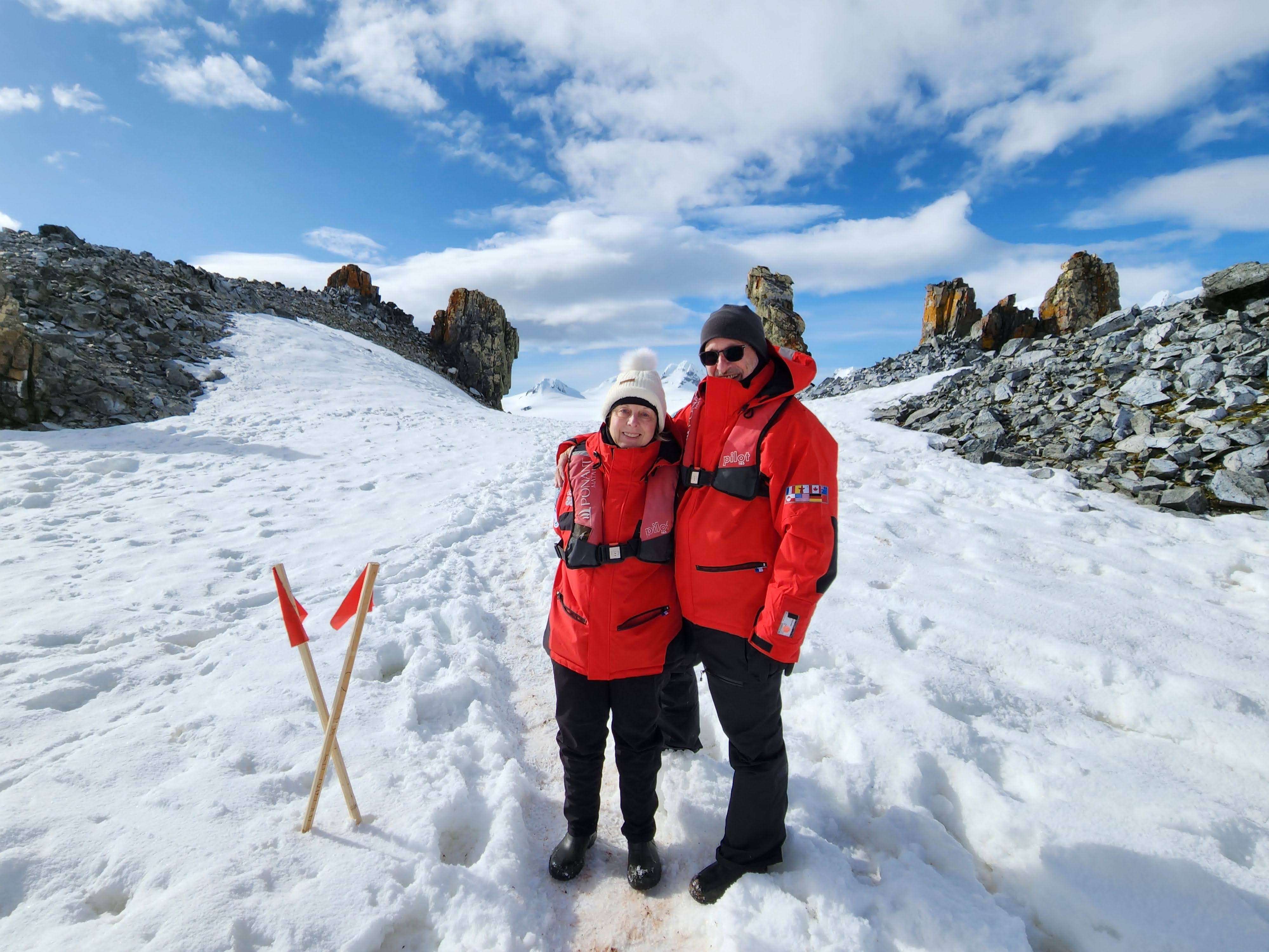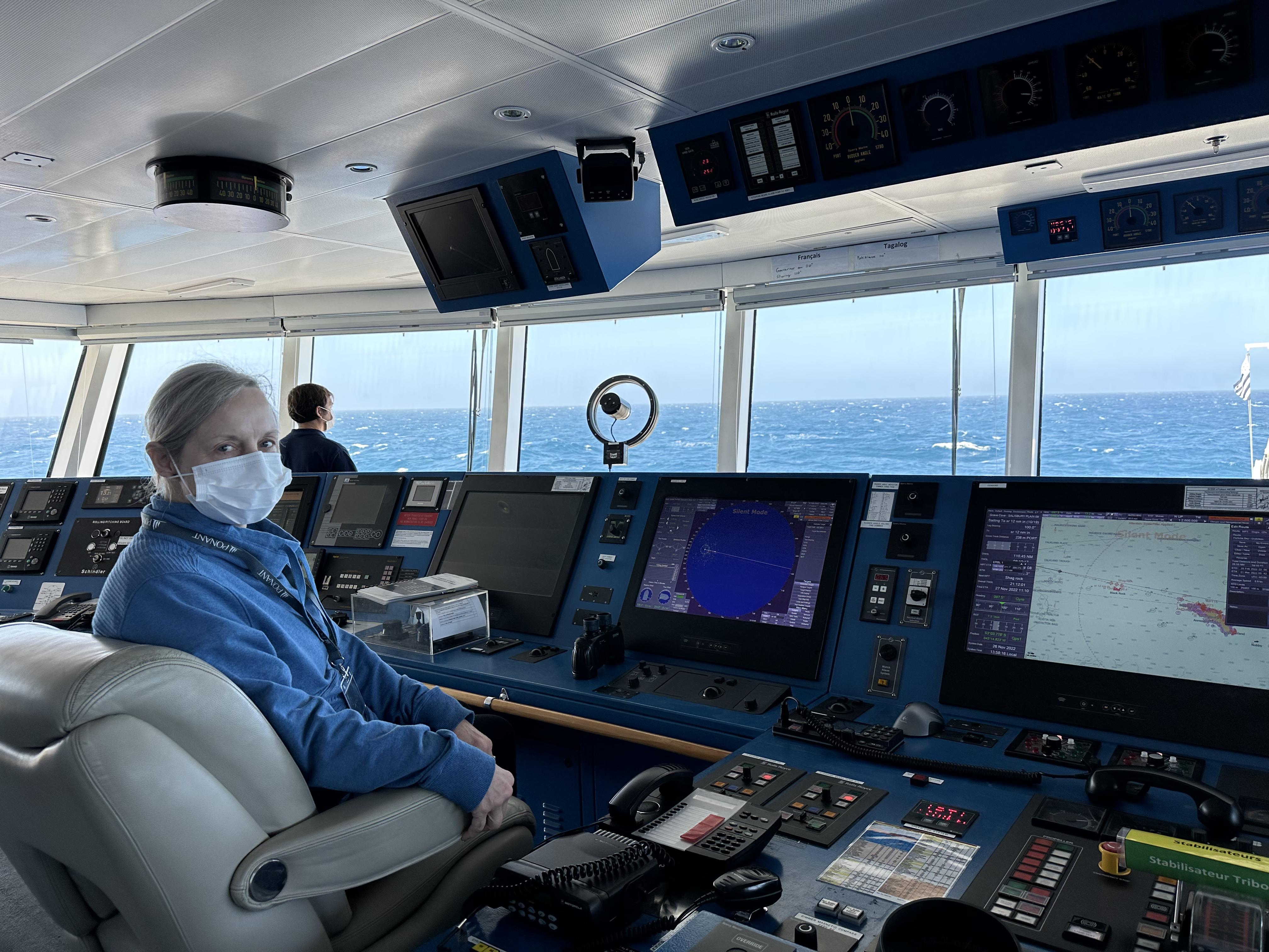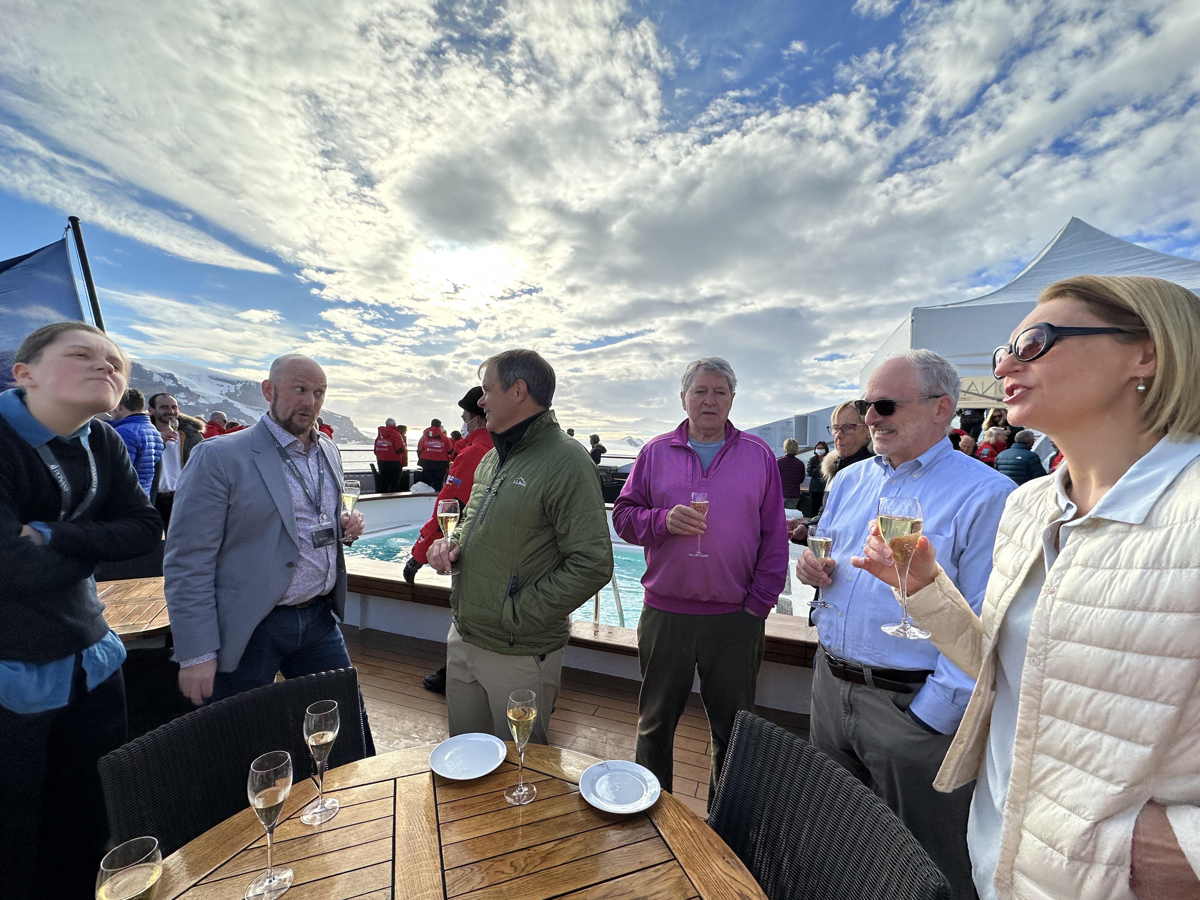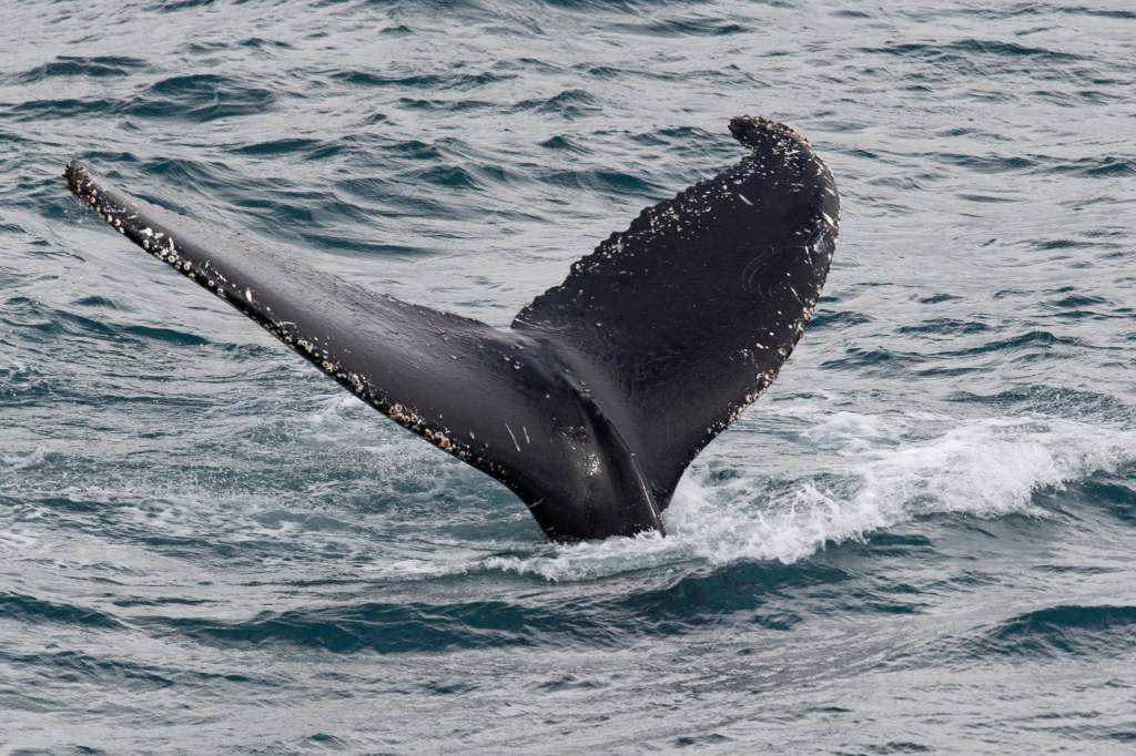 Fortunately, both Rob and I did pretty well with the motion. Some of our fellow travelers did not, but improved with time and appropriate pharmaceuticals which were available from the ship’s doctor. The first day of the storm we had signed up for a wine tasting, the sommeliers were set up for the 25 who had registered. 6 of us showed up. Just more for us! And even with the top deck buffet closed (motion is more pronounced on the higher decks, so if you are worried about motion sickness pick a cabin on a lower level in the middle of the ship) dinner in the dining room (on deck 2) was quiet. Some people said the motion woke them up at night, others felt it rocked them to sleep. You get used to it- holding on to the vanity when you brush your teeth, using the handrails on the stairs, learning new uses for grab bars in the shower, sometimes just holding on where you are until the ship settles. When the waves were really high they closed the outer decks, but even when it was just plain windy it could be challenging. When whales were spotted everyone went first running for their cabins to grab parka then running for wherever viewing spot was indicated. A couple of times the wind was so strong grabbing a buddy was helpful (thank you Mary Ann!) It actually became kind of fun, ooohhh that was a good one. If you want to see what that looks like in action.