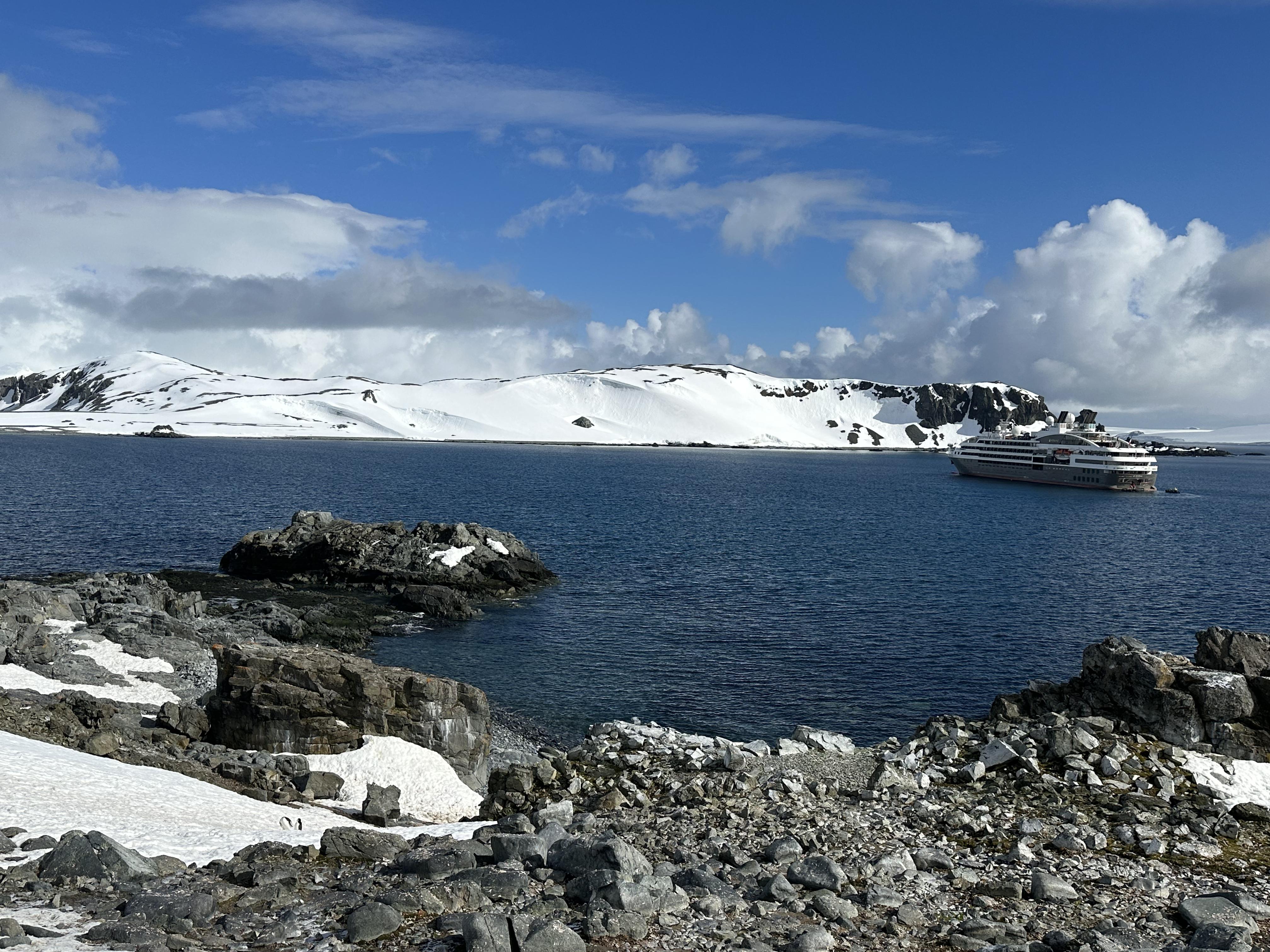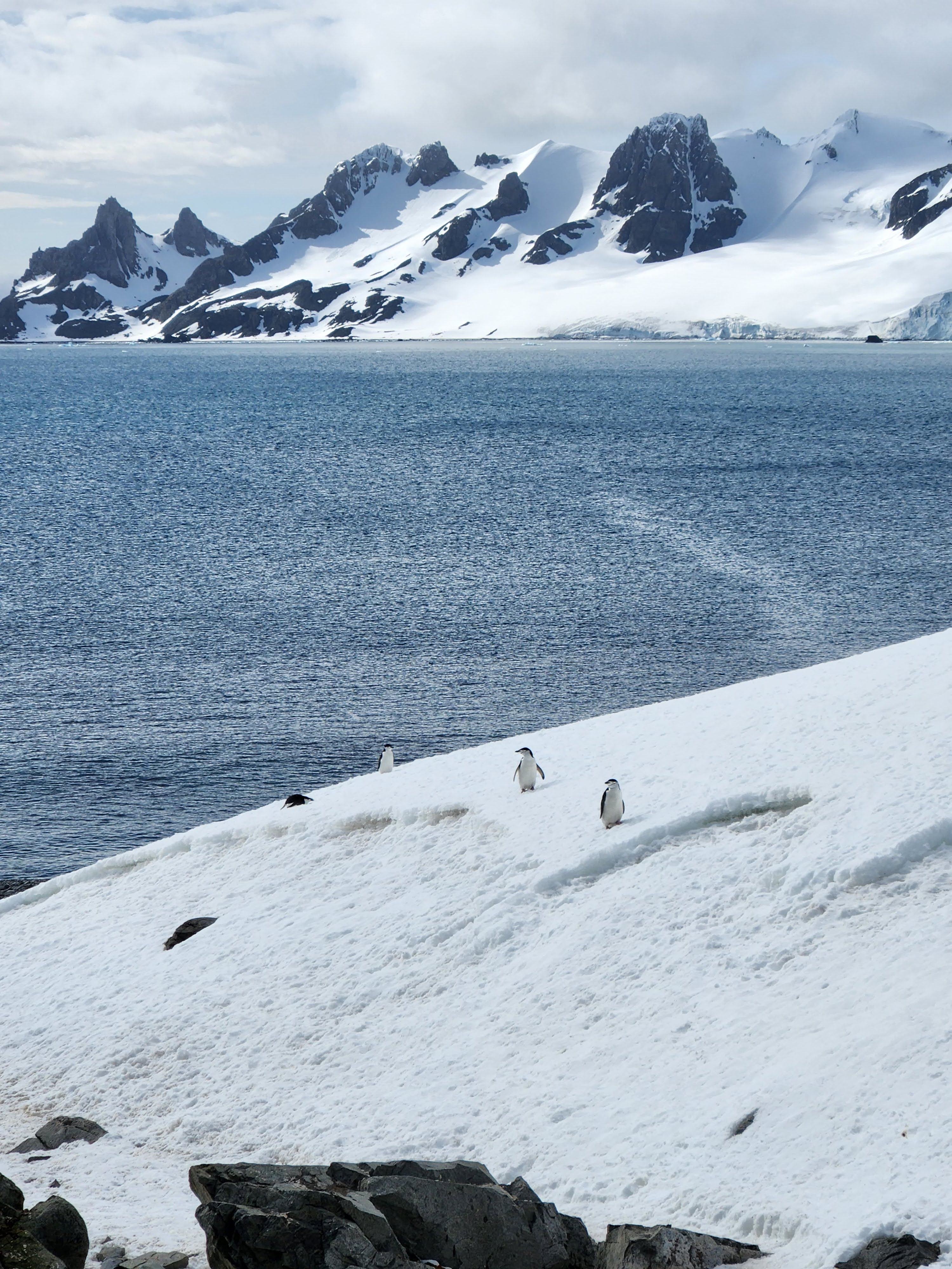 The ship then moved on to Half Moon Island, a spectacular crescent shaped island where we watched the chinstrap Penguins and made our way through some deep snow to a beautiful spot overlooking the sound to Livingston Island.