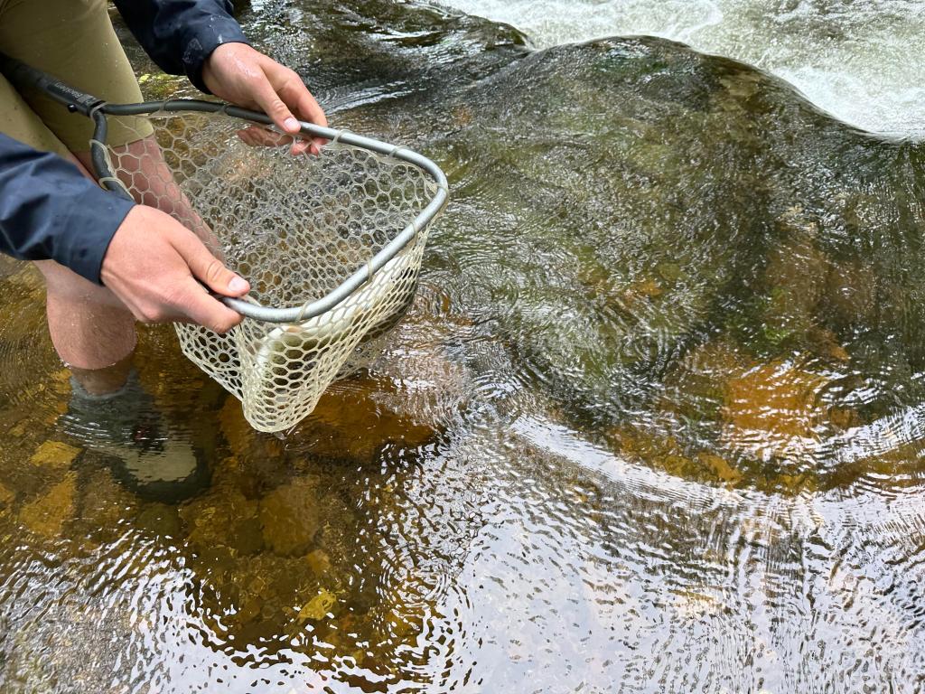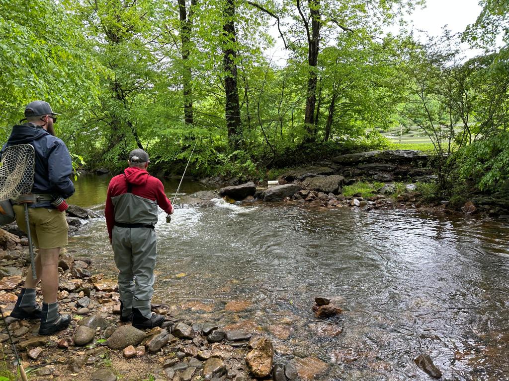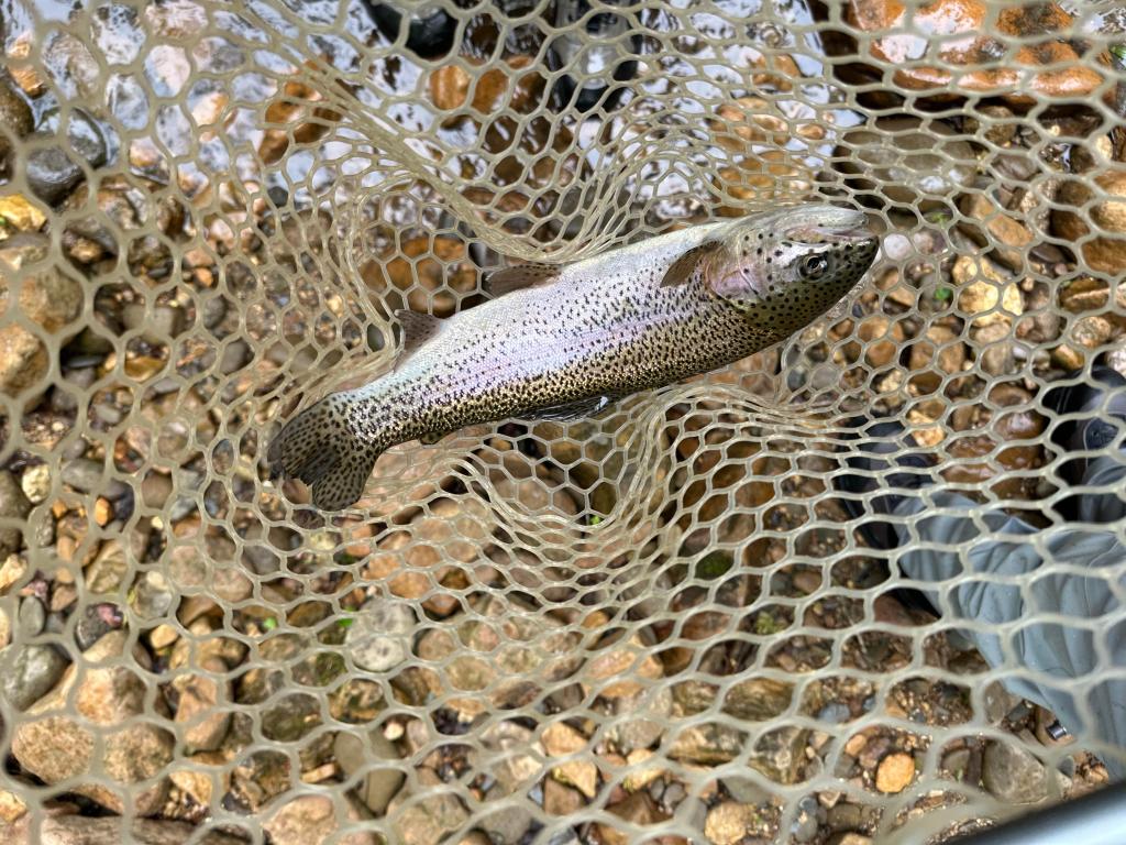 Breakfast is delicious- always a griddle cake of some kind, as well as a chef’s selection and about anything else you can imagine. The fresh squeezed orange juice is great by the way. After breakfast we waddled our way down the hill to the fishing cabin for our fly-fishing lesson. That is something we have wanted to try, but it’s a lot more complicated than baiting a look and sticking it in a lake, so this seemed like a good way to give it a go. They provide all the equipment, teach you the basics and provide tips, help and guidance throughout. Including untangling lines from vegetation and helping net any wayward trout who wander onto a hook. I had three do that…. So I had a great time.