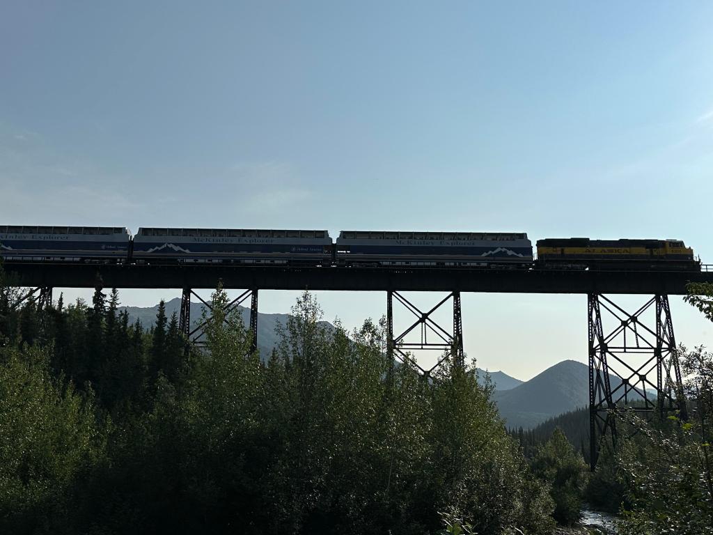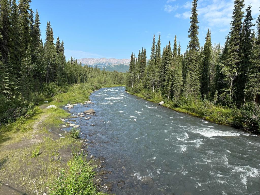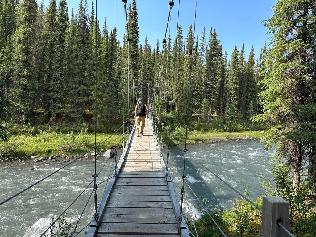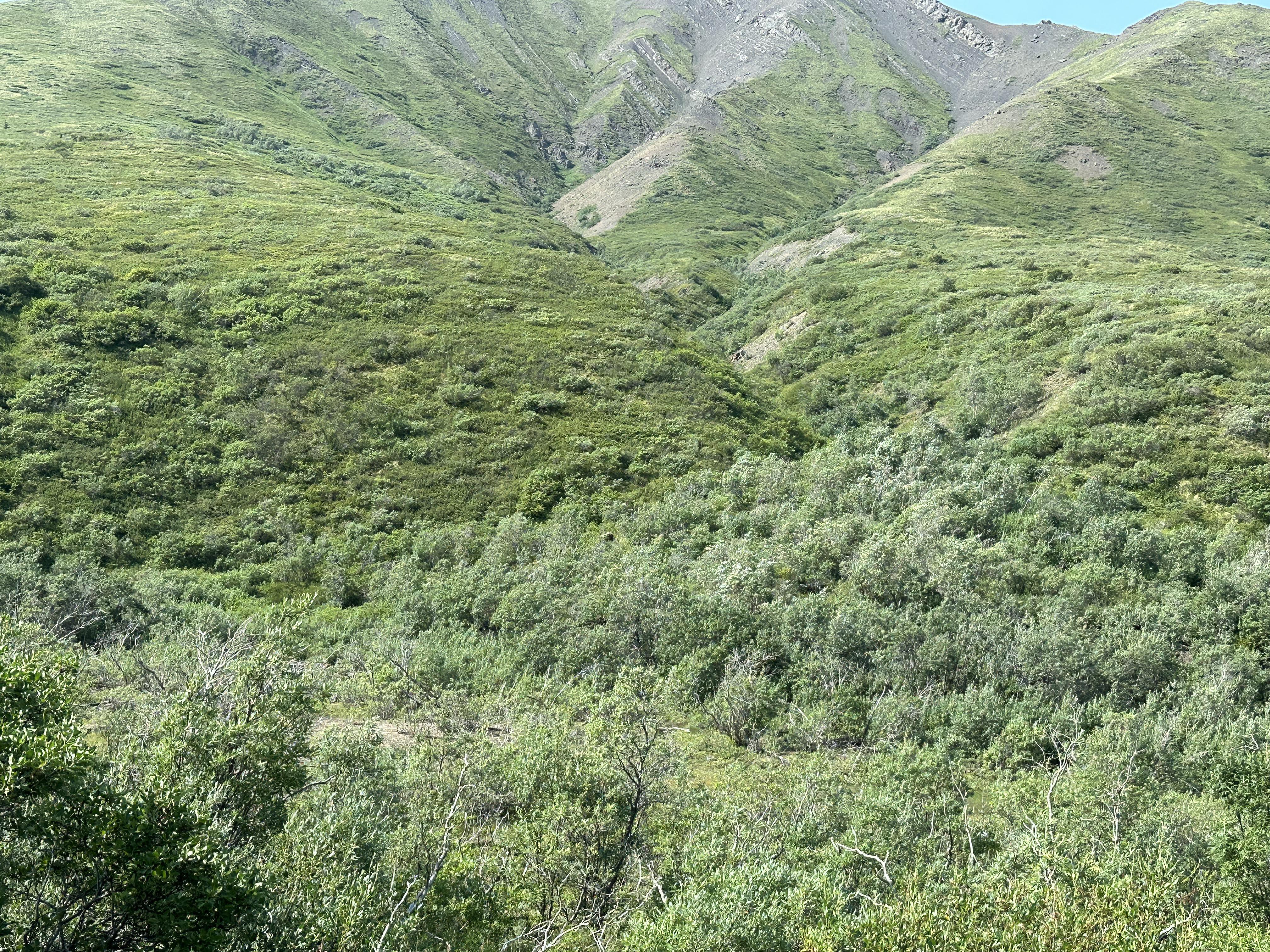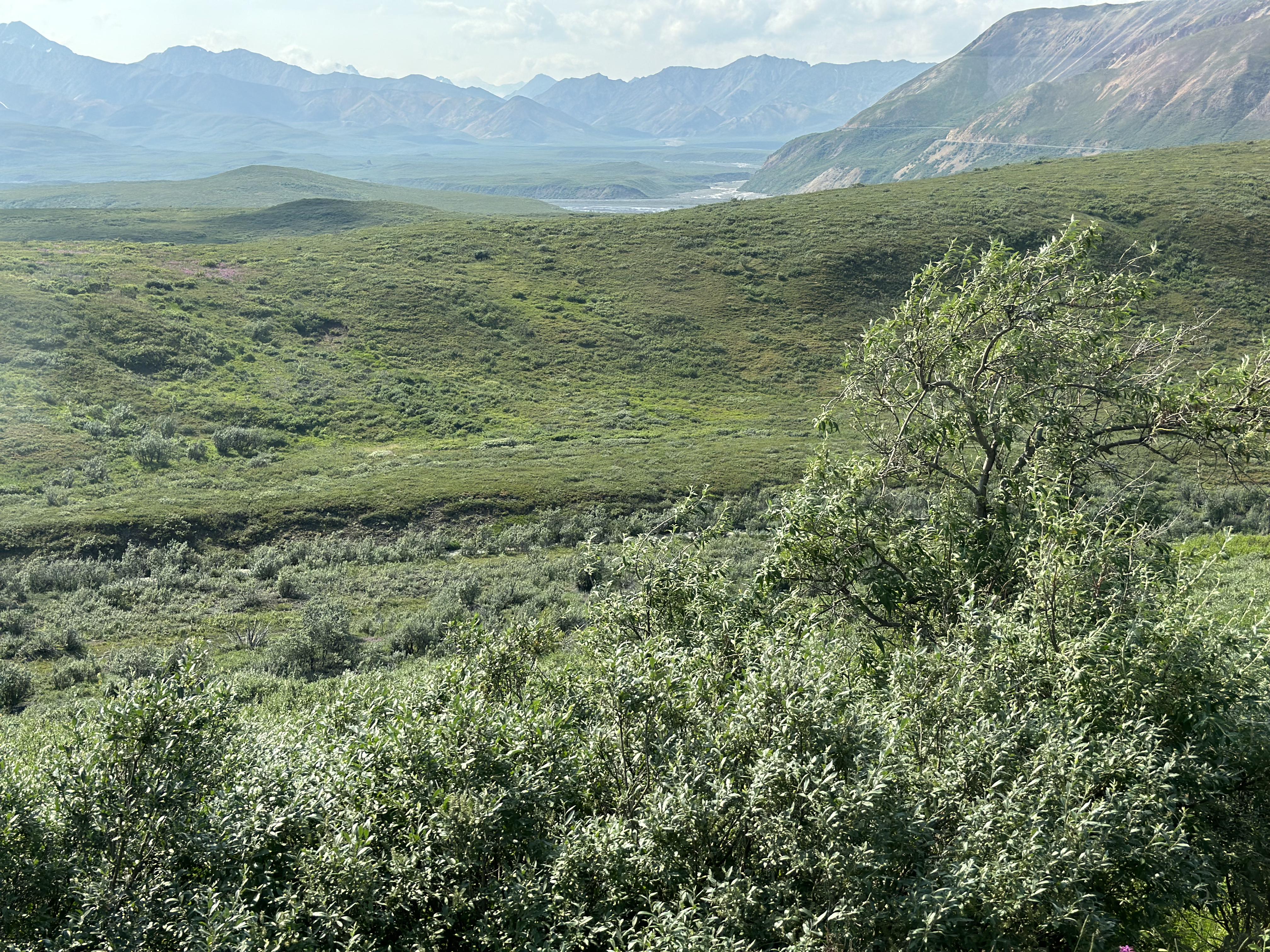 Alaska is cool. Except when it’s cold, frigid, or during our visit to Denali National Park where it was hot enough to feel the permafrost melting. Low 80’s didn’t seem hot to folks from Phoenix, where it was then 120, but that’s about as warm as it gets. Climate change and melting permafrost have had a huge impact on Denali National Park. With a goal of preserving as much wilderness as possible much of the park has no infrastructure- no trails, roads and no use of mechanized equipment. The park’s sole road traverses 92 miles of the park’s 7,480 square miles and private vehicles are permitted on only the first 14 miles. Shuttles, tour and transit vehicles are the only mechanized means to travel the rest. Over the years as the permafrost melted, a section of the road that was built over a rock glacier began to crack, first an inch or two a year, escalating to several feet a day, eventually sliding over 70 feet necessitating the closure of the park road at mile 43 until at least 2026 when a bridge over the gap is scheduled to be completed.